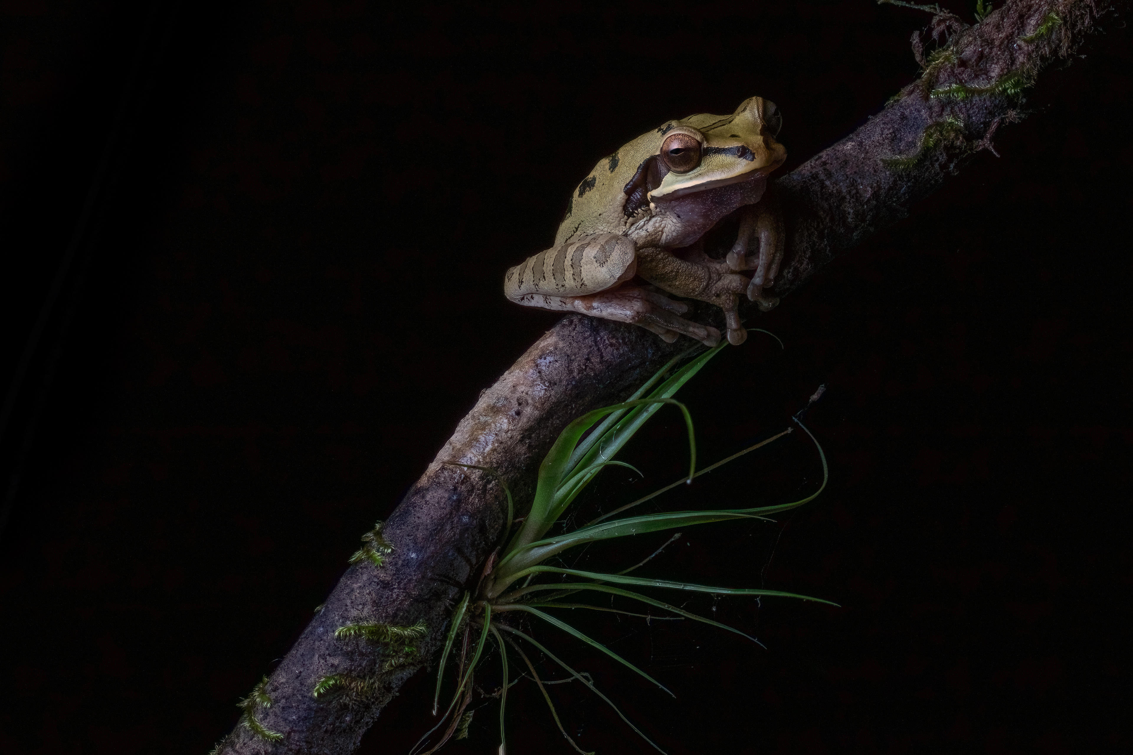 A Masked Tree-frog perched just above a small epiphyte. I found this individual just along a stream in the foothill of Uvita de Osa.