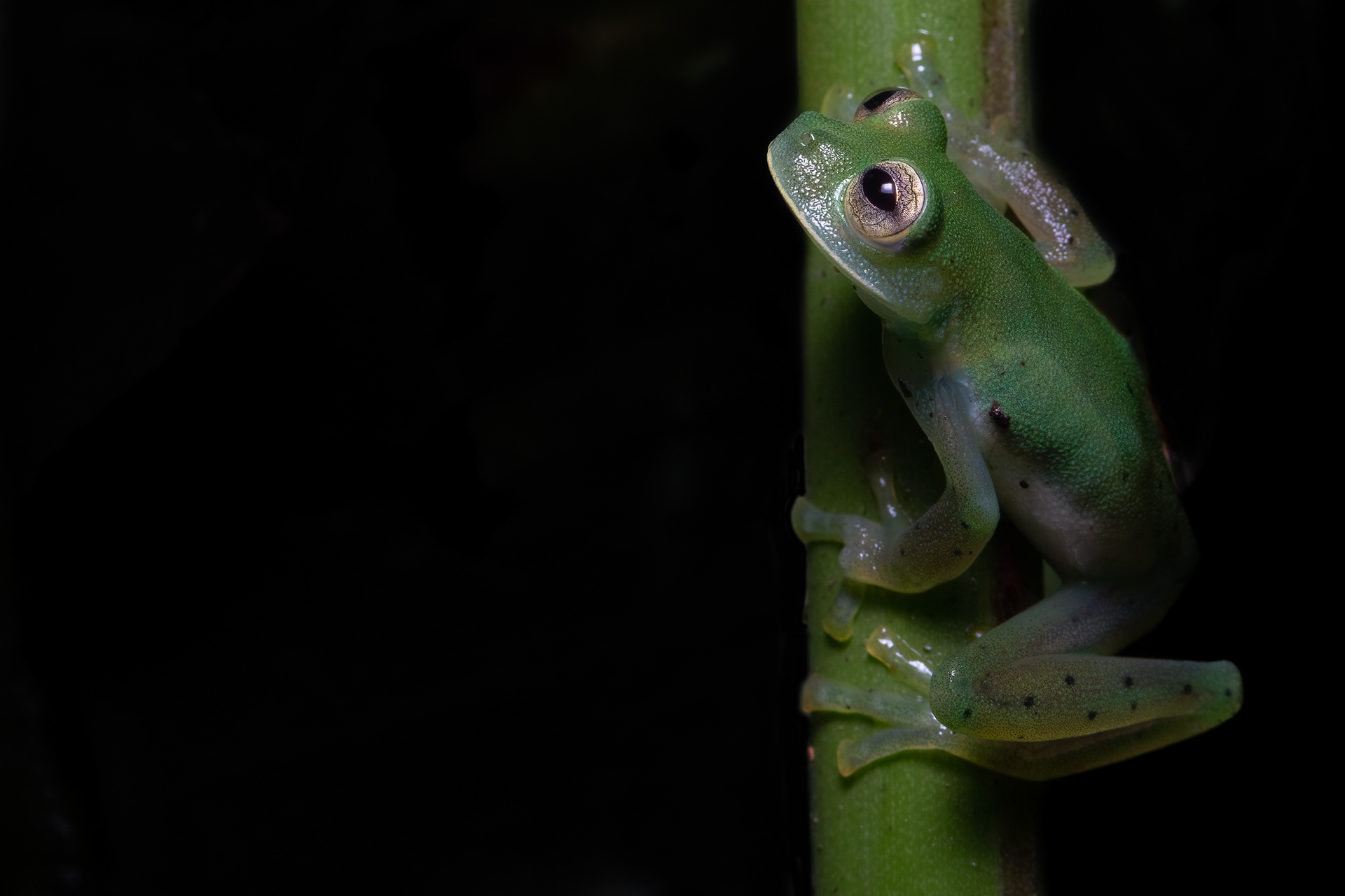 I photographed these Dusty glass frogs on the Osa peninsula of Costa Rica. A research and myself found a creek which we surveyed most nights and one night found this stunning species right at the end.