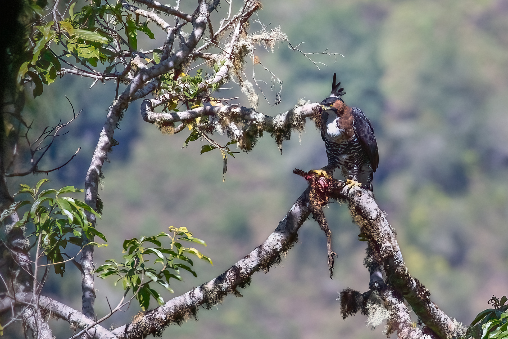 I came across this Ornate Hawk-Eagle male after watching him and his fledgling battle for territory all morning, crashing through the canopy above the river Chirripo was an impressive sight. Sure enough the male eventually perched right in front of us.
