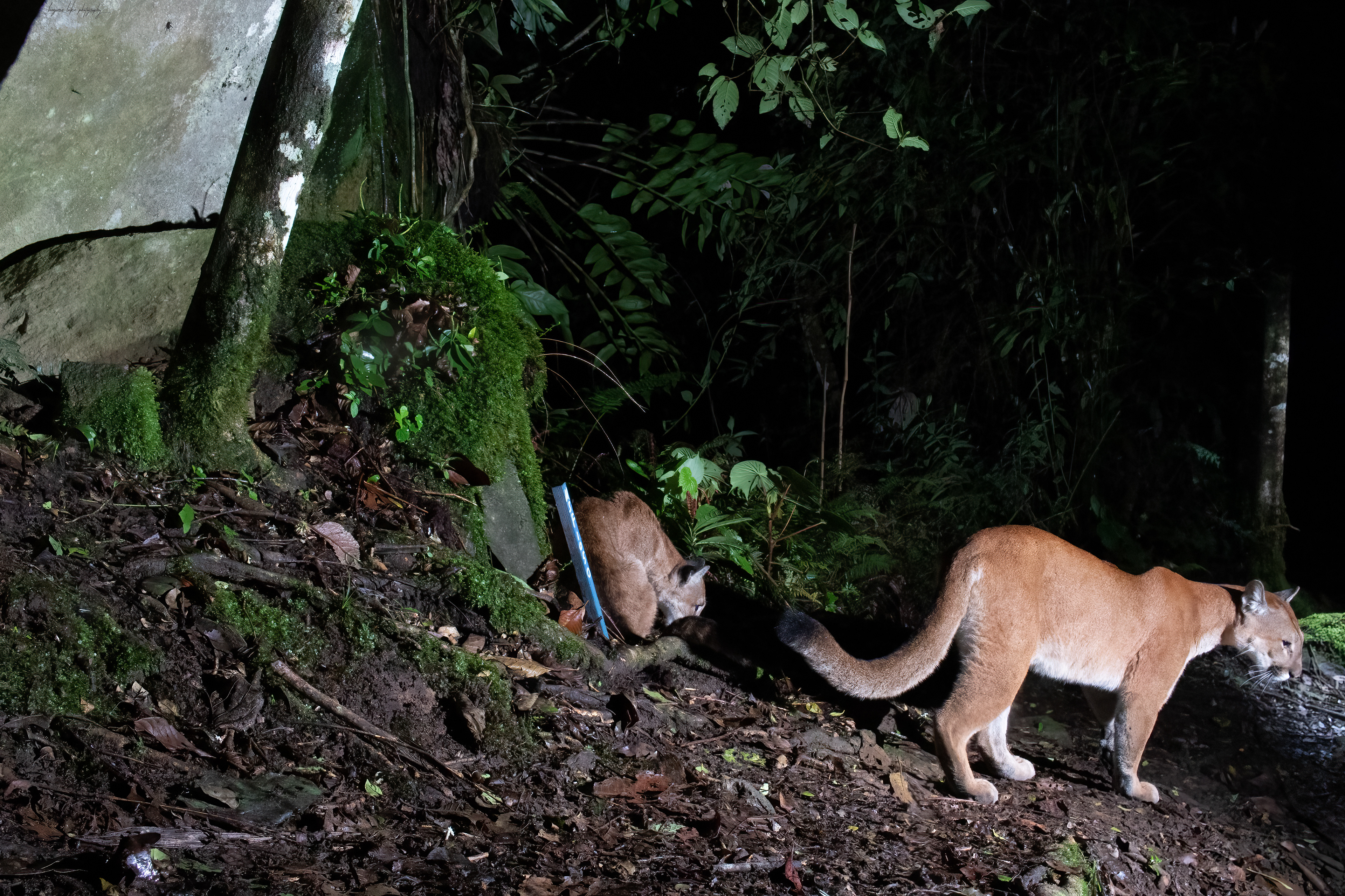 he collared peccary is one of the puma's main prey species, captured just a few hours apart it is likely the puma's are looking for the heard.