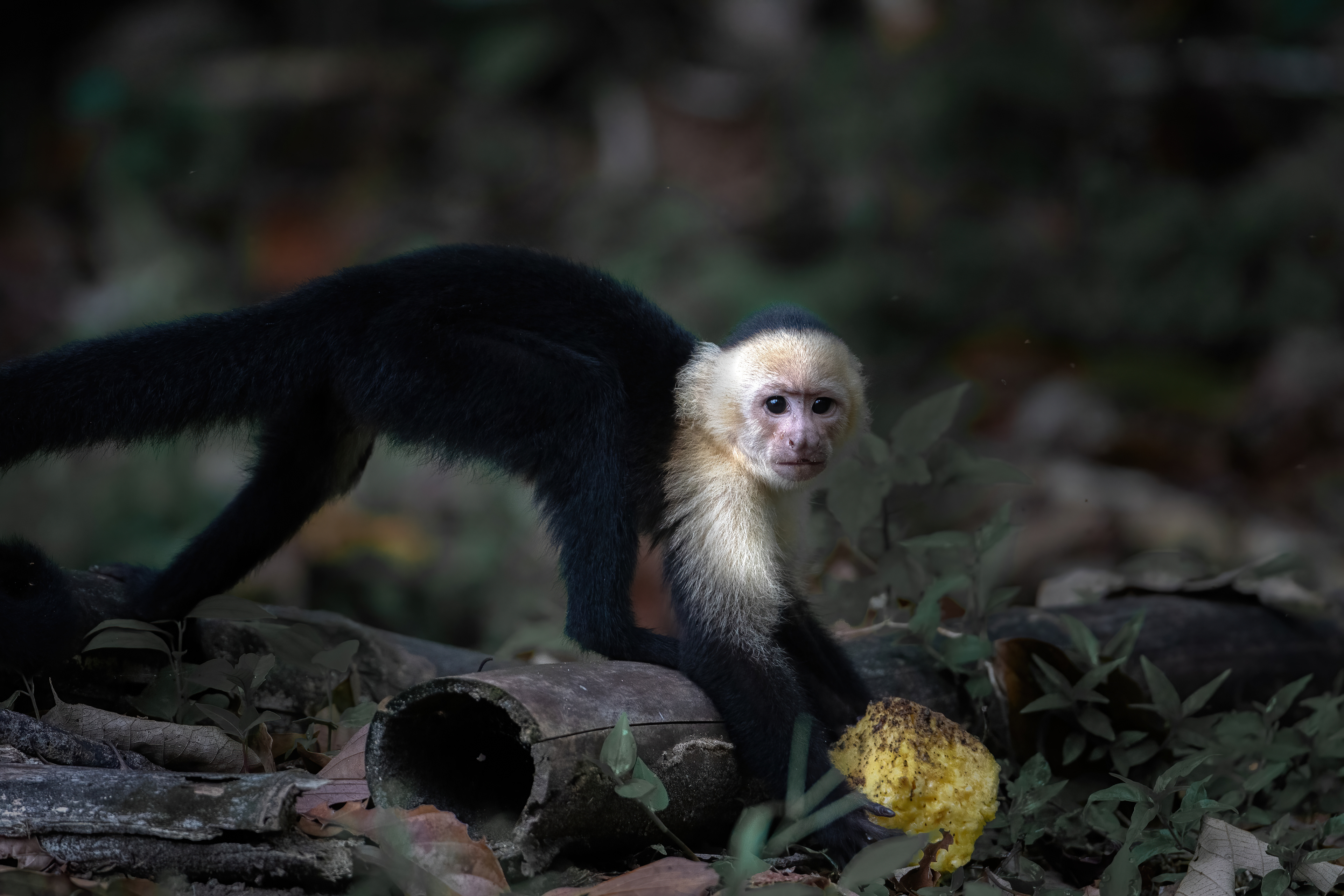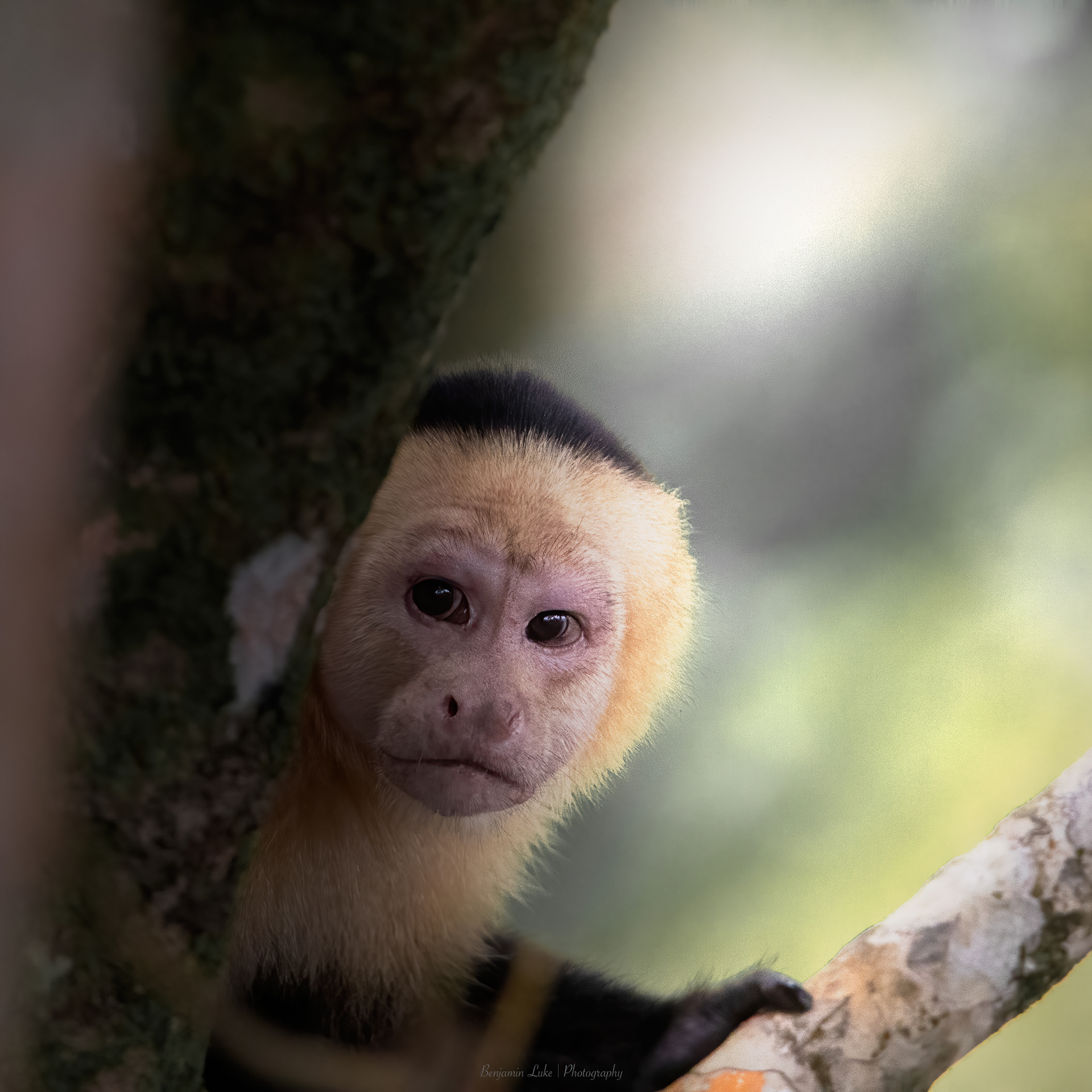 This juvenile White-Throated Capuchin was spending its day feeding from our compost, in its mischievous ways coming down until it was spotted, before jumping back into the tree.