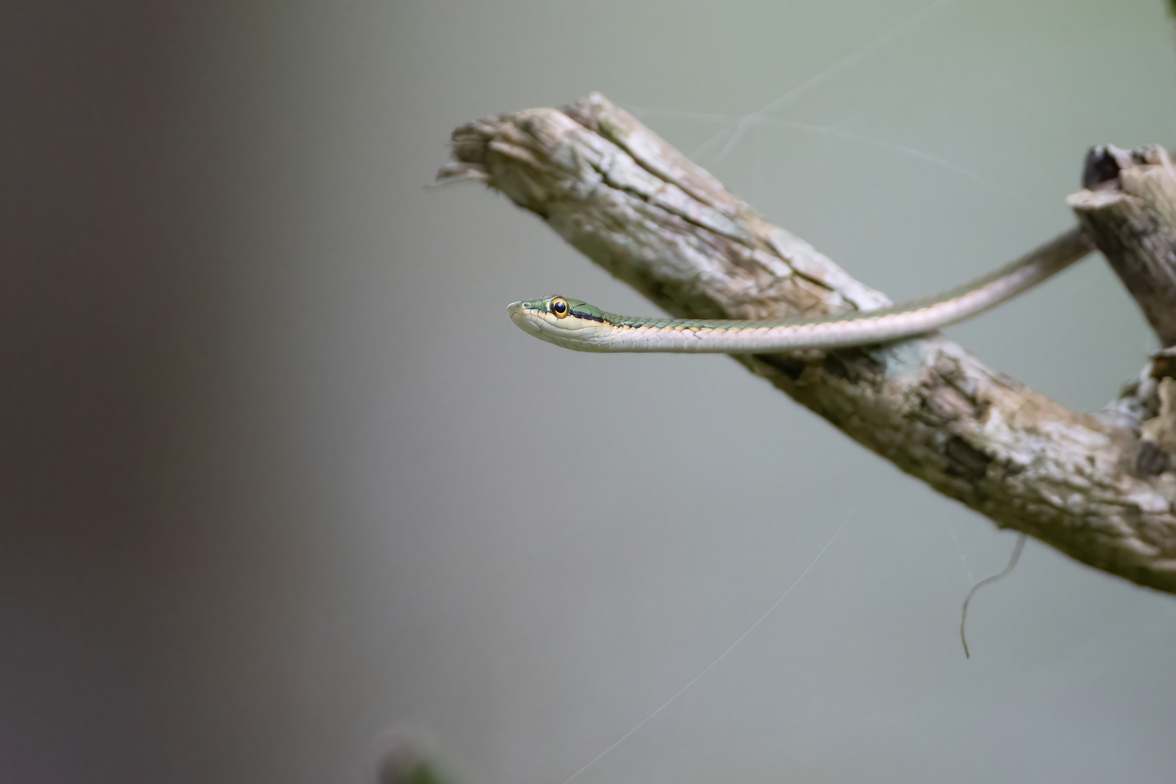 Another snake from the parrot family, this Yellow-Lipped Parrot Snake was a tiny juvenile and the head was only around the size of my pinky fingers nail. Quickly positioning my 500mm lens on top of an old gas cylinder on base I was able to find focus on this small reptile.